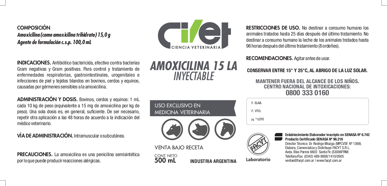 Antibiótico bactericida, efectivo contra bacterias Gram negativas y Gram positivas. Para control y tratamiento de enfermedades respiratorias, gastrointestinales, urogenitales e infecciones de piel y tejidos blandos en bovinos, cerdos y equinos, causadas por gérmenes sensibles a la amoxicilina.