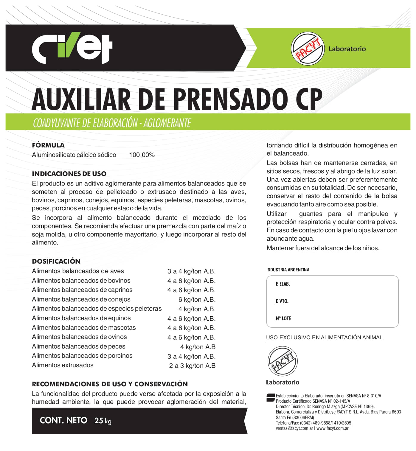 Elaborado, Comercializado y Distribuido por FACYT S.R.L