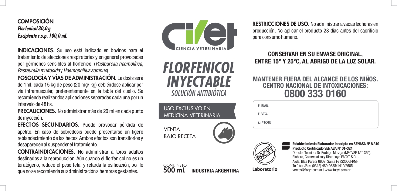 Su uso está indicado en bovinos para el tratamiento de afecciones respiratorias y en general provocadas por gérmenes sensibles al Florfenicol (Pasteurella haemolítica, Pasteurella multocida y Haemophillus somnus).