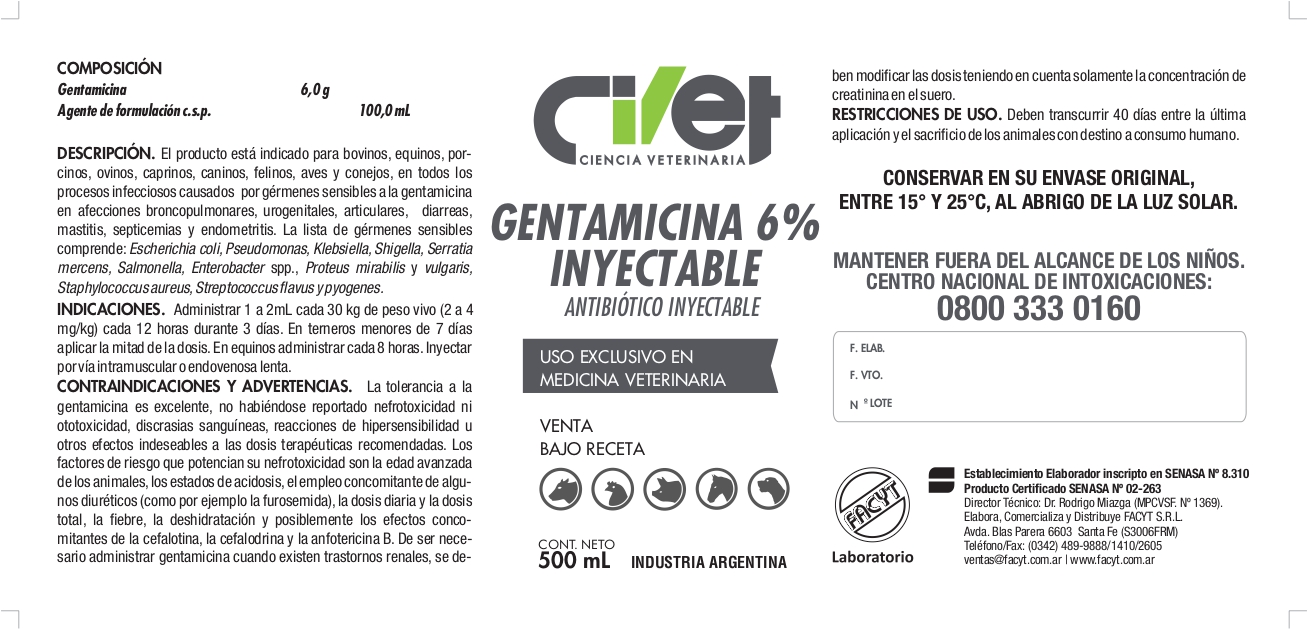 El producto está indicado para bovinos, equinos, porcinos, ovinos, caprinos, caninos, felinos, aves y conejos, en todos los procesos infecciosos causados por gérmenes sensibles a la gentamicina