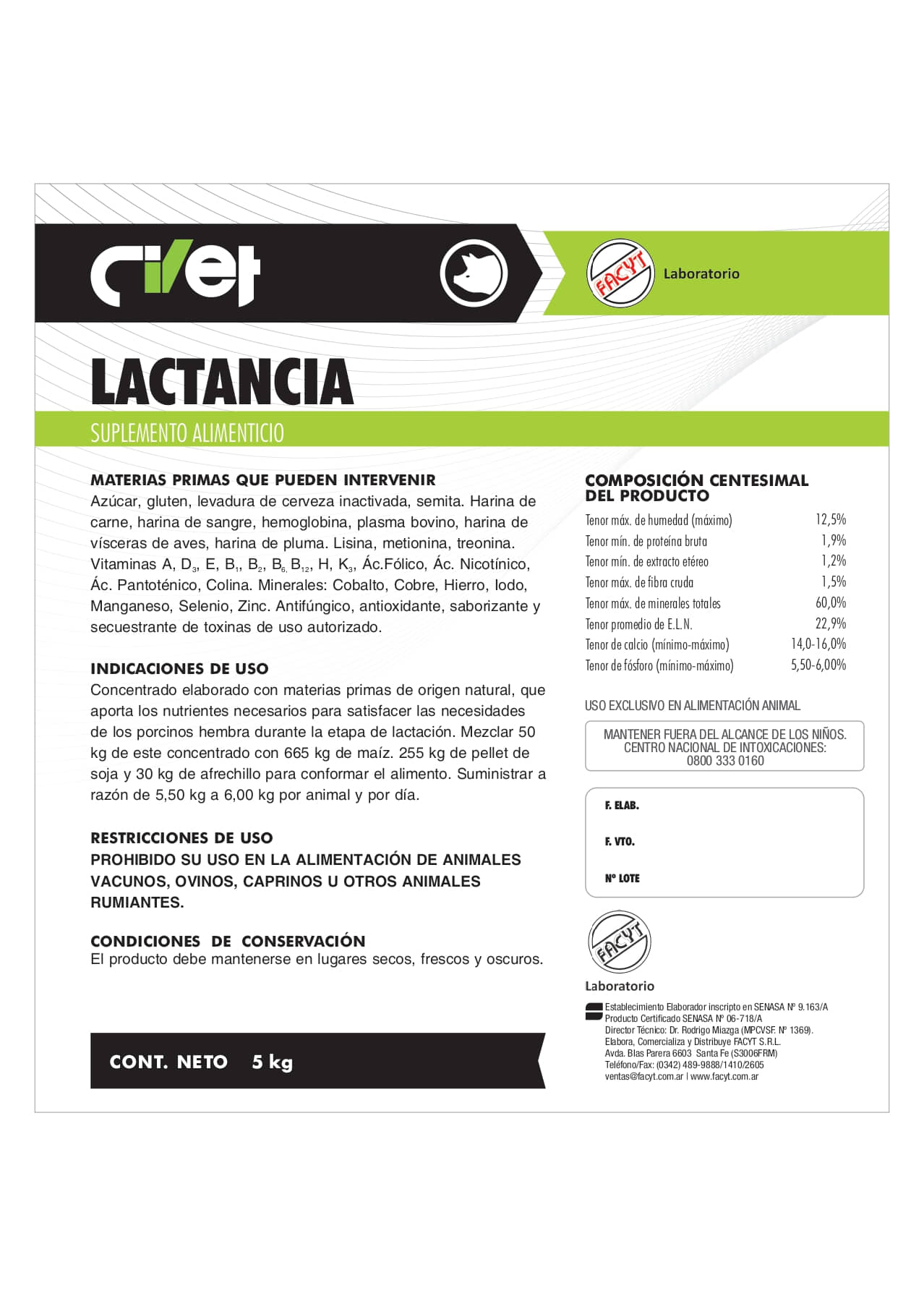 Concentrado elaborado con materias primas de origen natural, que aporta los nutrientes necesarios para satisfacer las necesidades de los porcinos hembra durante la etapa de lactación. Mezclar 50