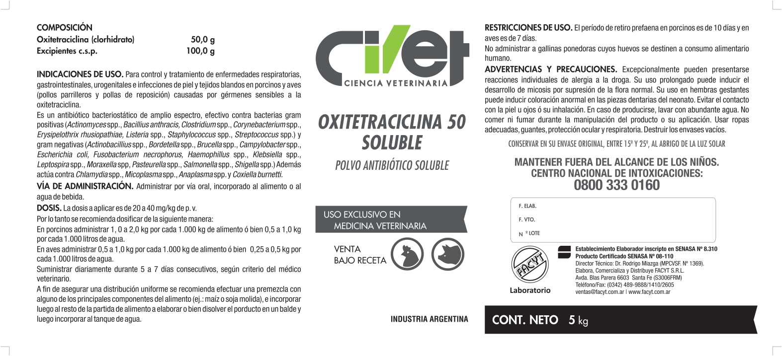 Para control y tratamiento de enfermedades respiratorias, gastrointestinales, urogenitales e infecciones de piel y tejidos blandos en porcinos y aves (pollos parrilleros y pollas de reposición) causadas por gérmenes sensibles a la oxitetraciclina.
